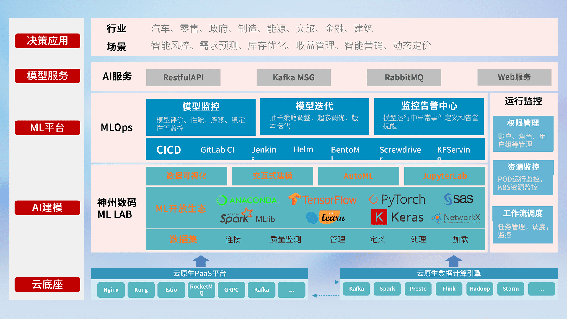 数据+模型双引擎驱动,,,,面向智能服务场景,,,快速灵活利用AI技术,,支持业务决策,,,,助力企业智能化转型破局。。